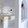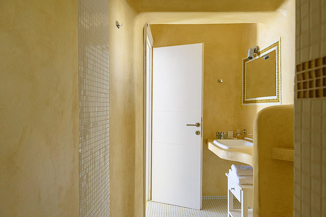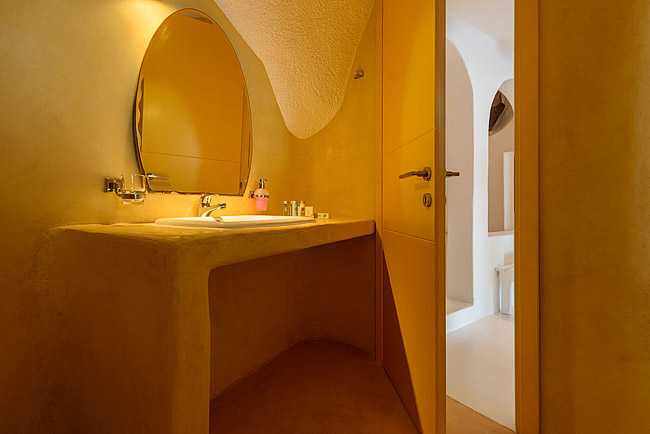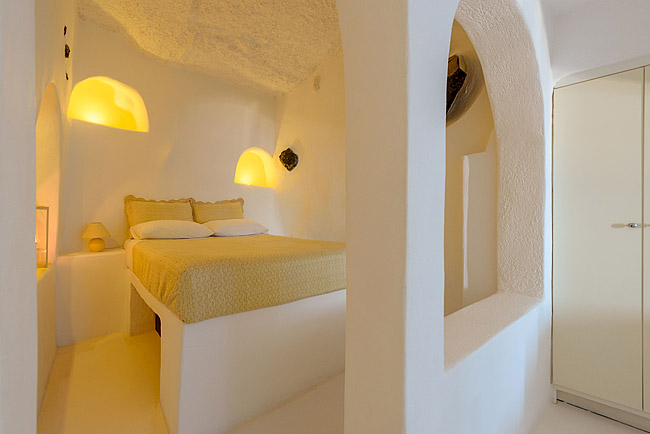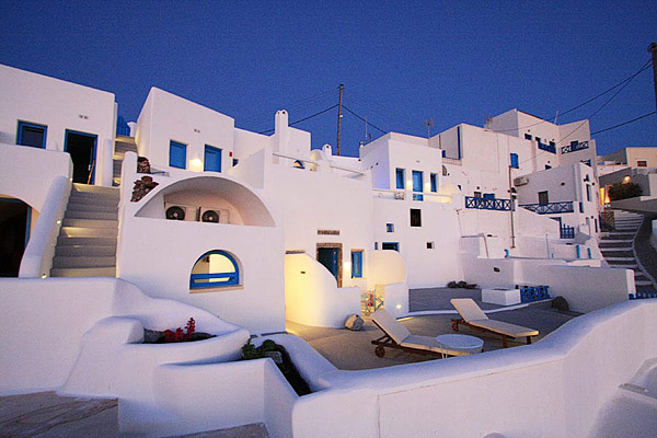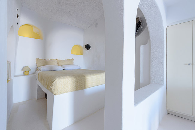 The hotel reflects the traditional Cycladic architecture, with simple and clean lines which make it unique. It is a true ornament for the region, as many of the rooms are carved in the rocks.