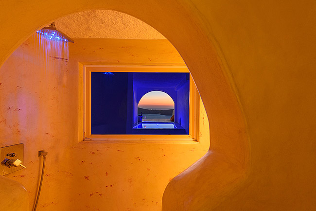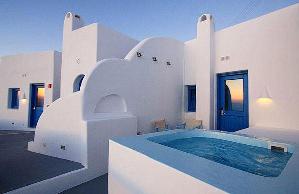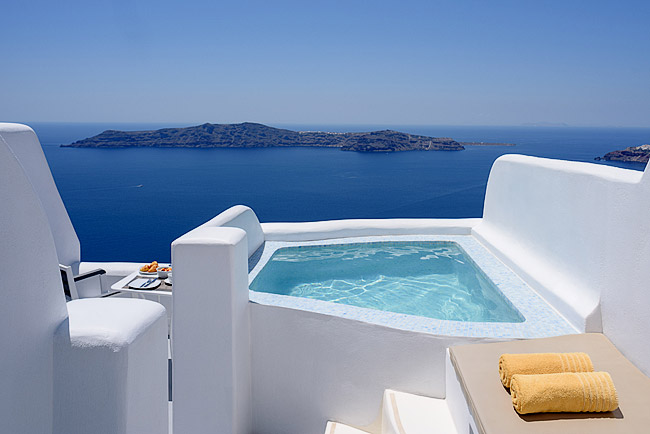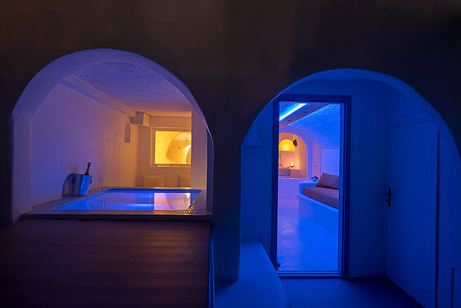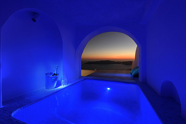 We offer our guests: 1 Honeymoon Suite with outdoor private jacuzzi, 1 Maisonette Suite with outdoor private jacuzzi, the Iliovasilema Suite with indoor/outdoor private jacuzzi & the VIP Suite with outdoor private jacuzzi hot tub. |