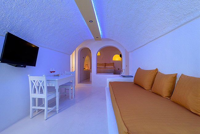 Abyssanto Suites & SPA offers traditional suites, all enjoying Caldera Sea & Sunset View, fully renovated in 2012, and built on the top of Caldera rim with magnificent views of the Caldera, the volcano and the sunset.
