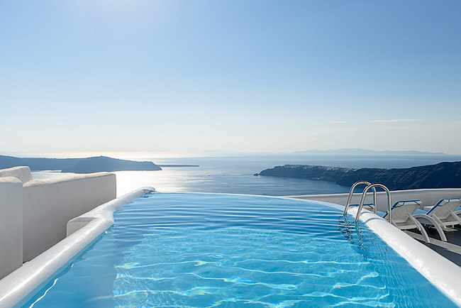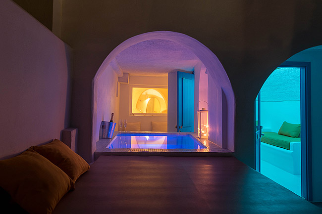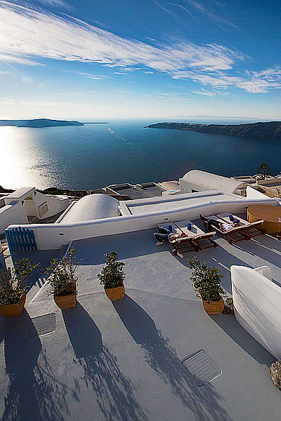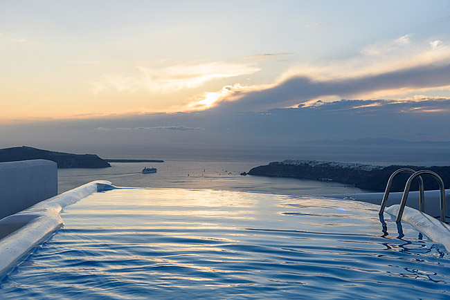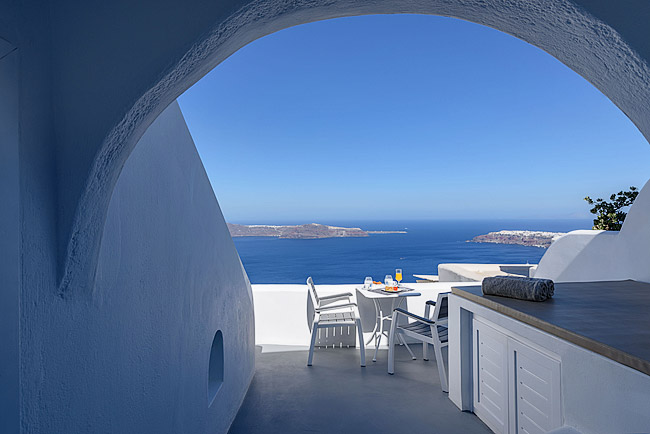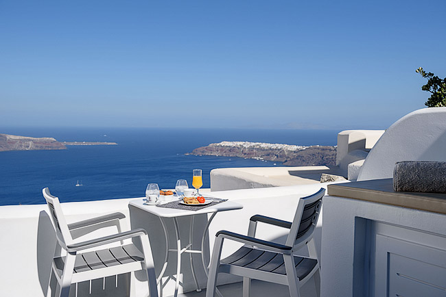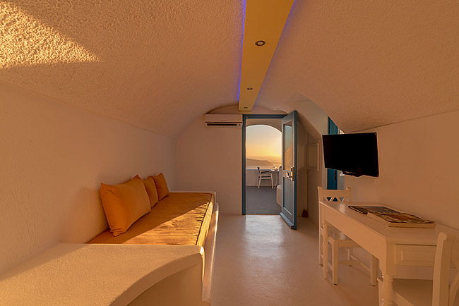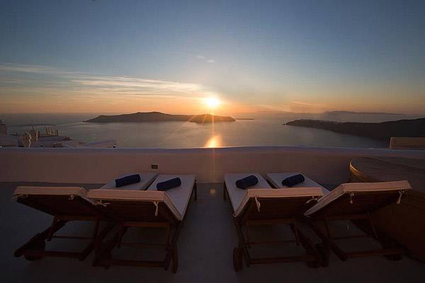 The privileged location of Abyssanto Suites & SPA, makes it the ideal destination for those wishing to relax and enjoy the magnificent view of the sunset over the Caldera and the volcano.