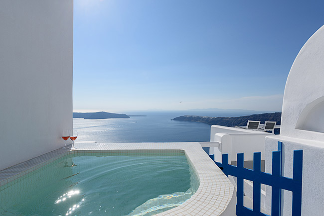 The hotel is ideally located in the well-know village of Imerovigli, north of Fira.