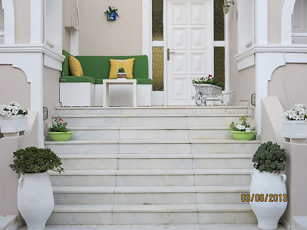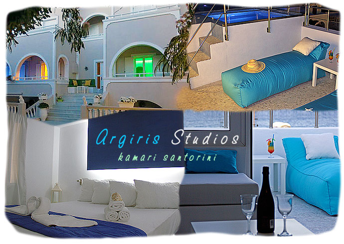 Argiris Studios is located less than 50 meters from the black beach of Kamari and close to the main promenade, which is famous not only for the pebbly sand, but also for the myriad of bars, taverns, restaurants and shops that make Kamari one of the top destinations of Santorini.