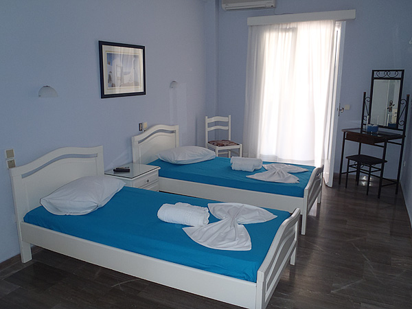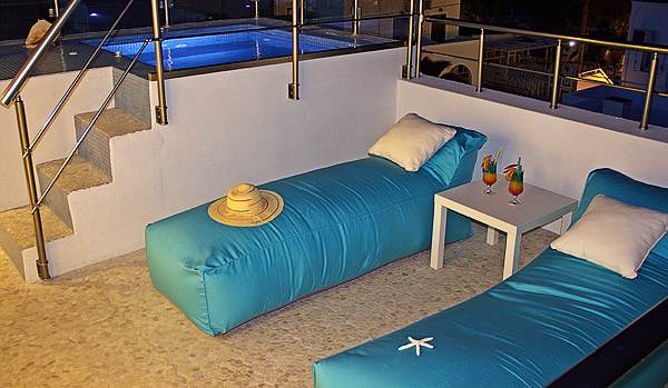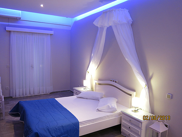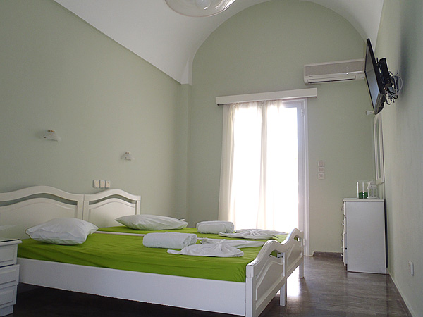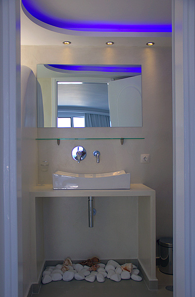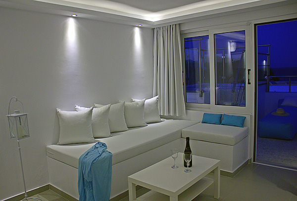 All rooms, built in the traditional architecture of the Cyclades, are tastefully decorated with bright colors. Very spacious, have a floor area ranging from 15sqm for the economy to 40sqm for the suite that also offers private hot tub and views of the Aegean Sea. |