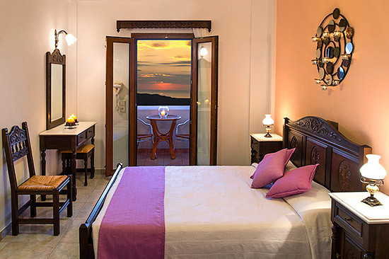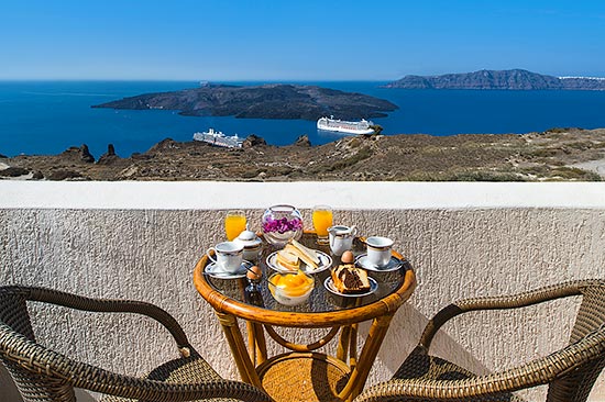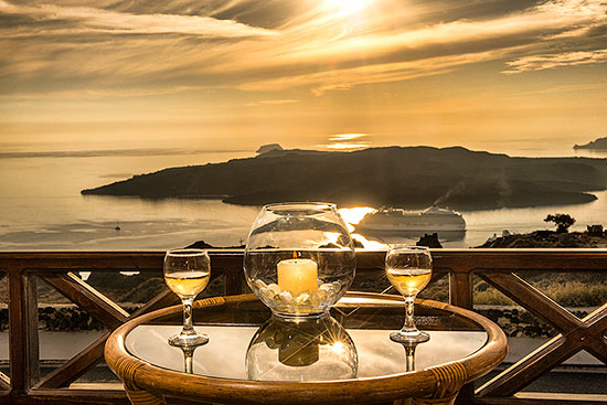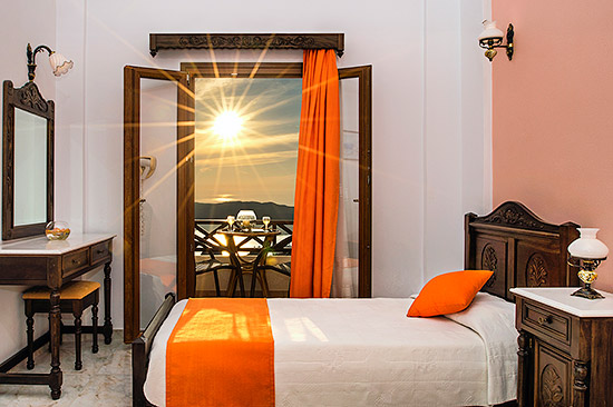 While on your private balcony you're sipping a good glass of santorinian white wine, indulging yourself with the stunning colorful view of the sunset on the Volcano, our friendly staff, pleasent and professional, will always be ready to meet your every need. |
