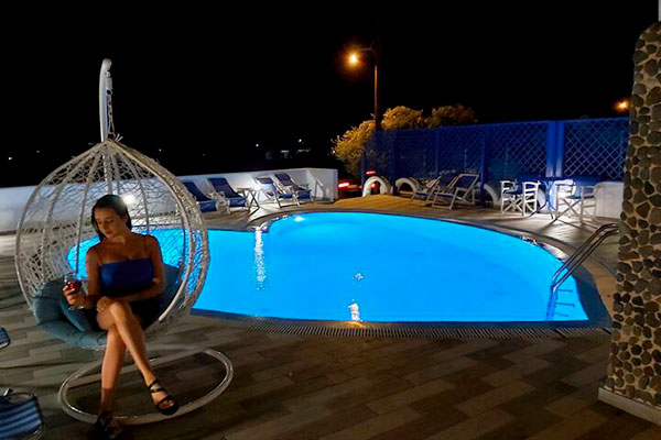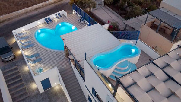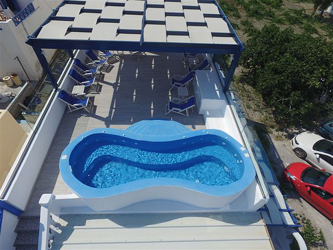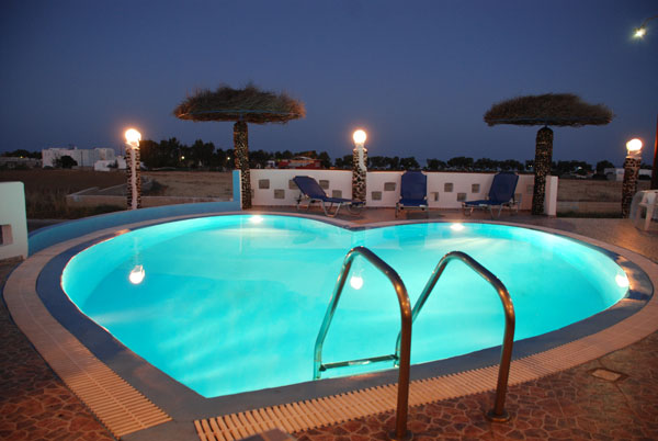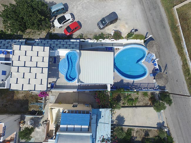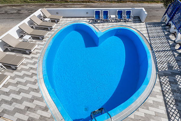 The hotel also has a family run restaurant for hotel's guests only, where you can taste traditional greek cusine while sitting in front of our heart-shaped swimming pool. Here you can also have your daily breakfast and any other meal while staring at the sea in front of you. On request, our hotel also provides guests with half or full board service.