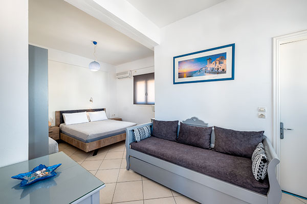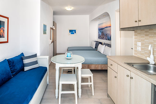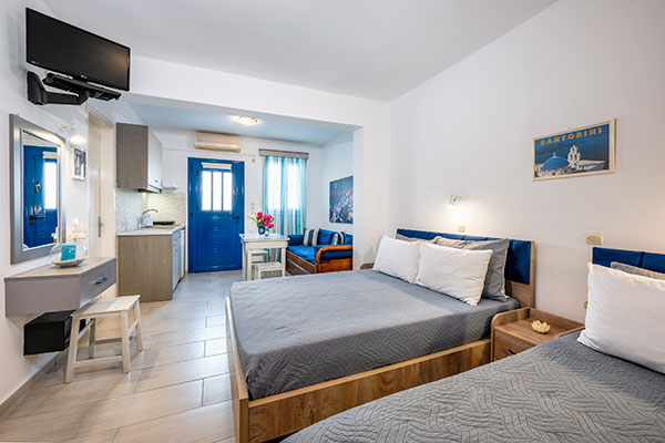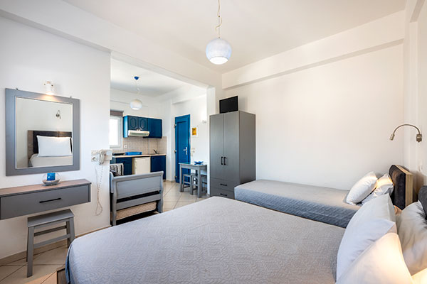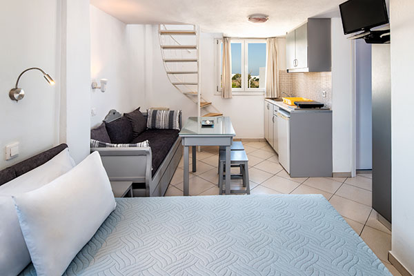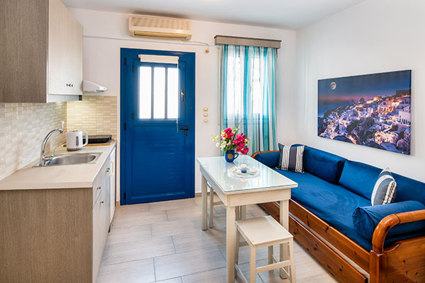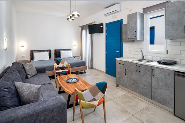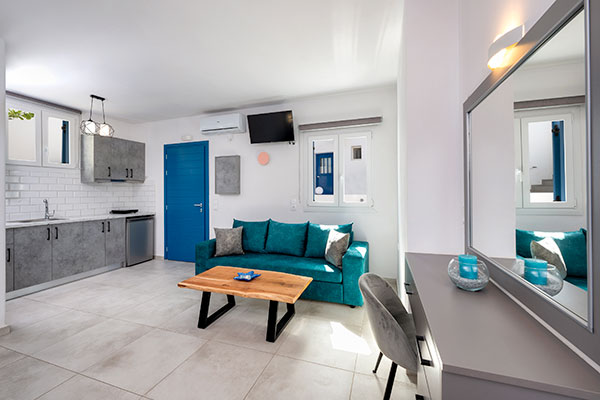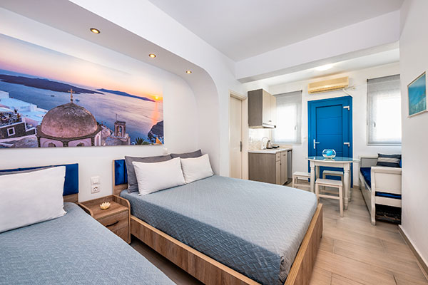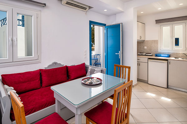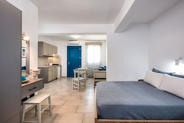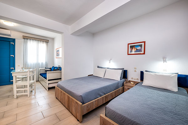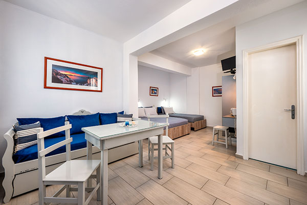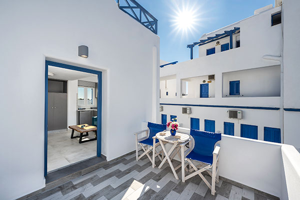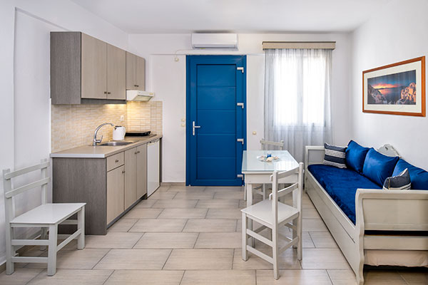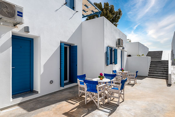 It consists of studios and maisonettes on two levels that have been recently renovated, in the respect of the cycladic style and keeping in mind our guests' comfort and needs.