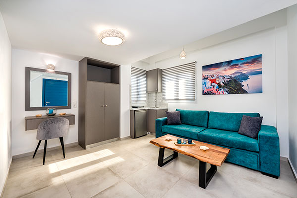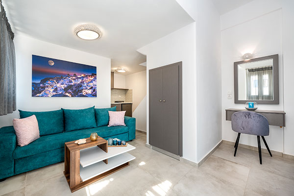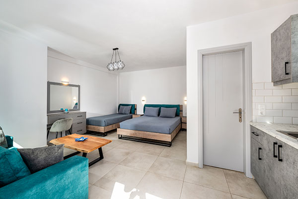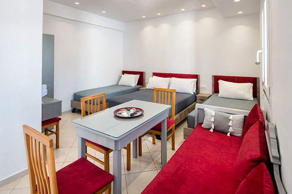 Our property offers accommodation in recently renovated and well furnished Studios and Maisonettes on two levels, which all offer modern facilities along with our warm hospitality. Furthermore we can offer you accommodation in Suites and in a self-catering 2-bedroom Apartment.