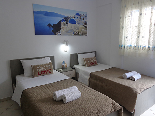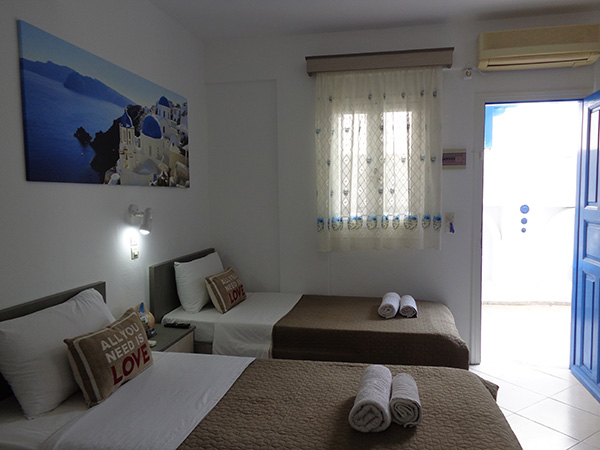 In case you prefer to use the local buses on your arrival please note that you will need to take first the Bus to Fira (capital) and then change bus to Perissa-Perivolos. Bus stop EURO MARKET (400meters walk to Honeymoon).