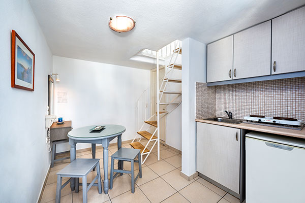 The Maisonette 4/5 can accommodate up to 5 people on two levels and offers the kitchen with a double bedroom, and 3 single beds, a beautiful balcony, air conditioning and a private bathroom.