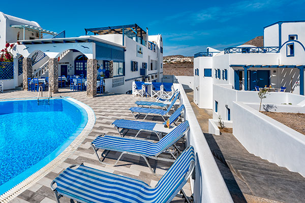 The lively area is very famous in Santorini, not only for the organised beach, but also for the afternoon bars, chalets and tavernas which are just a stroll from our hotel.