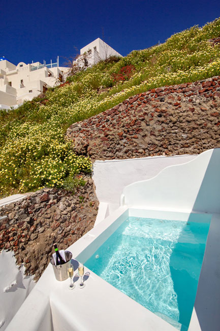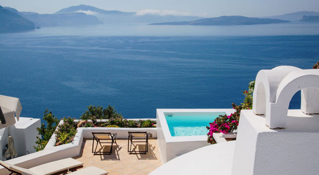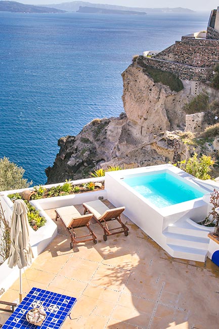 In Oia, on the Caldera cliff, Ifestio Villas swing, with breathtaking views.