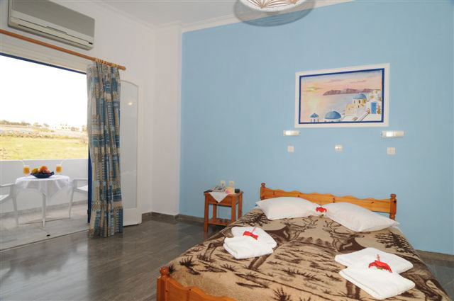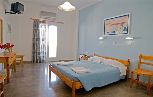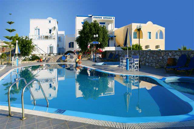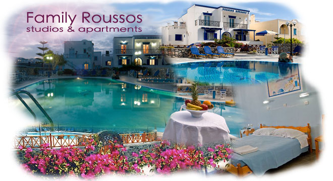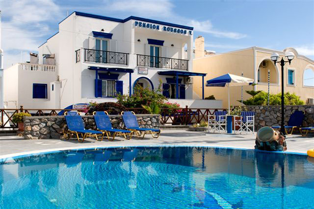 Family Roussos, located half way between Fira and Karterados, is a family run hotel offering the original and traditional Santorinian hospitality. Its excellent location allows guests to easily reach the main square of Fira with a short 10-minute walk. Also a quick trip by local bus will bring you to all main destinations on the island (Oia, Perissa, Kamari, ...)