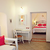 Studio: Studios are larger and more spacious than Double Rooms and offer a patio or balcony. Although they are more advantageously located within the hotel, they do not have a direct Caldera view. Most of them have double beds and they can accommodate up to 4 guests (on request). They are additionally equipped with a fully equipped kitchen