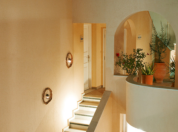Firostefani is just only 700 metres north of Fira, (the capital of Santorini) and its name means the “crown” of Fira. Reverie is conveniently located in the village of Firostefani, just a ten minute walk from Fira,right outside the centre but close enough to easily wonder around. It is not situated on the Caldera’s edge but exactly above it. The street in front of the Building provides easy approach (no steps to walk down) and it is very convenient in case you want to rent a car/motorbike or arrive by car, taxi or bus.