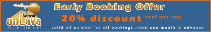 Then we go to the highest point of the island, Prophet Elias, to enjoy the almost 300° view of Santorini ..., at the center of the island we will visit the traditional village of Megalohori, with its winding cobbled pathways, is free of traffic… after we are going to Akrotiri and the unique Red Beach … Driving to the south we meet Perissa and Perivolos with the 5 km. black sand beach, to enjoy a cold coffee facing the Aegean Big Blue!!!