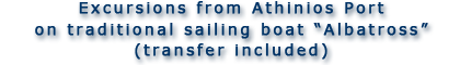 Afterwards, we will go around the White Island (Aspro Nisi) and to Firon Port at Thirassia for refreshments, or perhaps a walk up, or donkey-ride, to the village of Manolas.