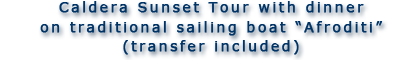 - Volcano, swim at the Hot springs, dinner with sunset at Oia, sailing around Caldera