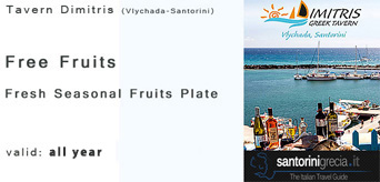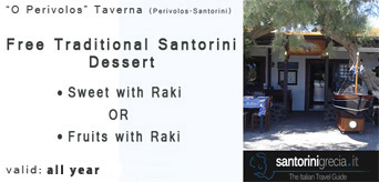 | Restaurants on the island of Santorini: here are some suggestions on where to eat on the island of Santorini. Traditional tavernas are highly recommended not only because affordable (sometimes very cheap), but also because they offer the typical greek food, cooked according to the tradition of Santorini island (such as moussaka, fava, tomatines, chloro, white eggplants, tomatokeftes). |