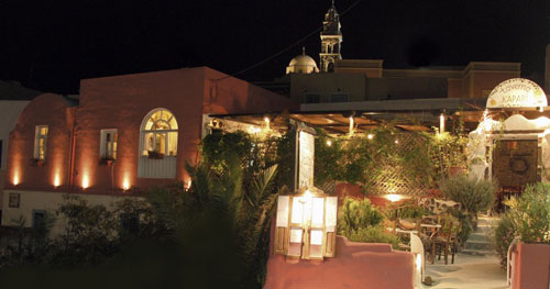 This traditional Tavern has been estabilished in 1989 and offers high quality greek cousine with meat and fish, also grilled, combined with a special selection of white and red wines, even in barrique. The bower and the fireplace create a cosy and familiar ambience. Greek music and, occasionally, greek dance are often performed among tables. Hospitality and good service complete the environment. The restaurant is located in the village of Firostefani, in an ideal location that can be reached both by car and with a nice stroll.