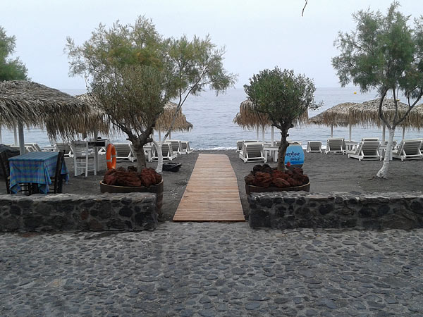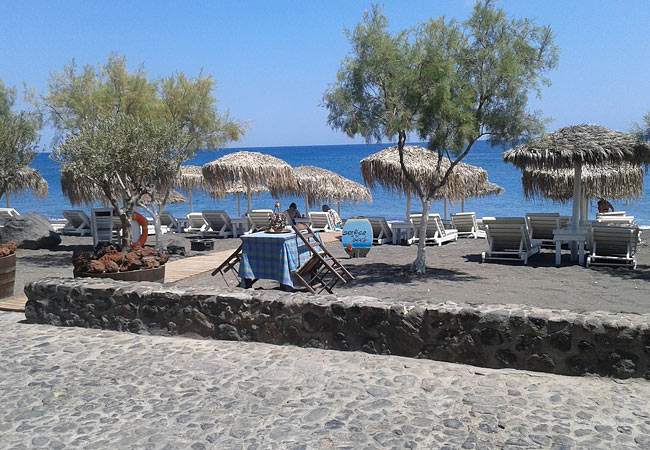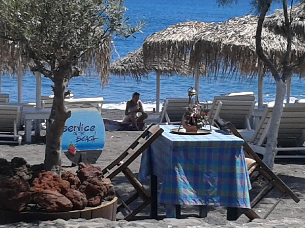 Restaurant Poseidon in Kamari-Santorini. Enjoy traditional greek cuisine, next to the famous "Black Beach" of Santorini. |