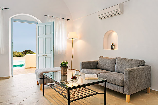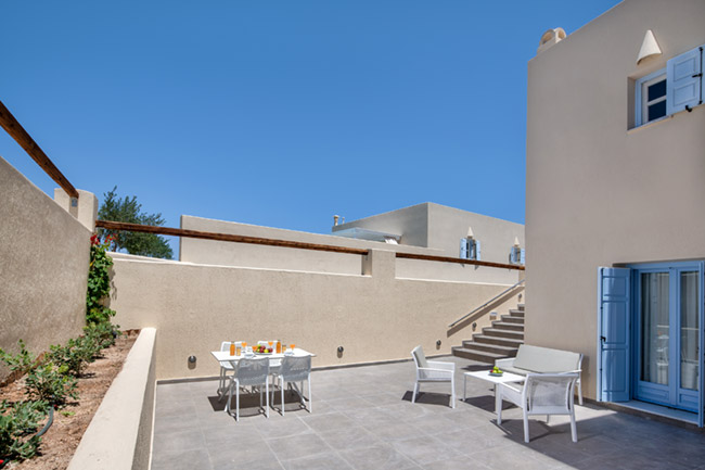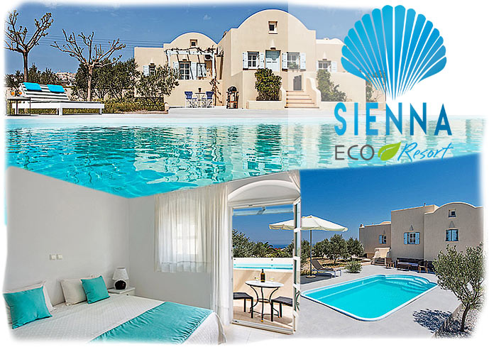 The Sienna ECO Resort, consists of 7 fully equipped accommodation units, tastefully furnished in the classic Santorinian style . Surrounded by greenery with well kept flower beds, all the units have private entrances, some of them a private swimming pool, sun terrace, patio, deck chairs and umbrellas.