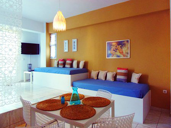 Patio Villa for 2-5 persons: A house ideal for couples, families or group of friends, made of two separate bedrooms, a spacious living room with single bed, a traditional kitchen, a spacious two-door bathroom with shower, a veranda overlooking the sea on the eastern side of the island. This villa can accommodate up to 5 adults. A shared free parking is also available.