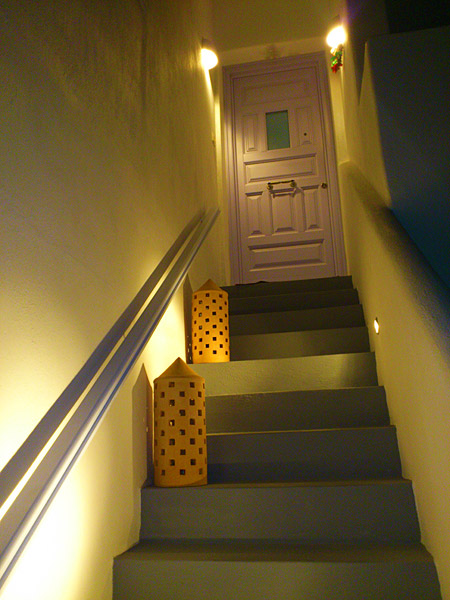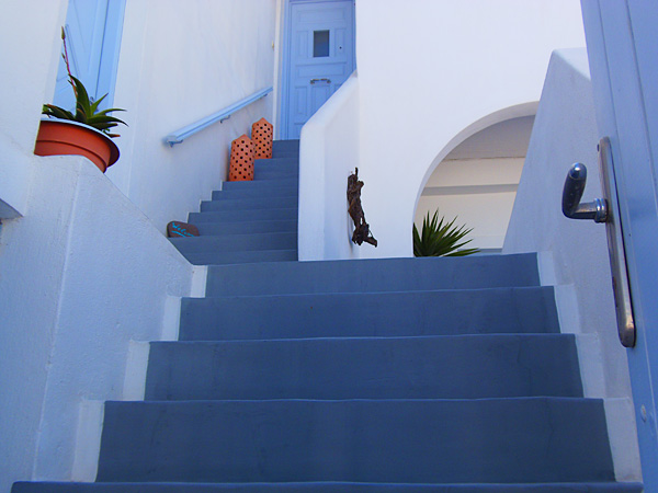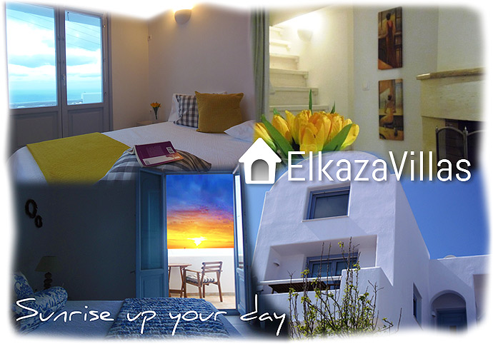 Villa Elkaza is just a few minute walk from the main square of Fira in a quiet position, in Kontochori area, on the lower road leading to Firostefani-Imerovigli-Oia, far enough from the noisy and crowdy streets of downtown, but with restaurants, cafes and lounge bars nightclubs a short walk away.