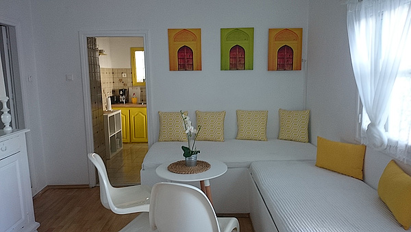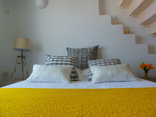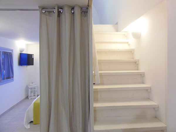 Loft Villa for 2-4 persons: A house ideal for couples, families or group of friends, made of two separate bedrooms, a living room with sofa bed and a fireplace, a small fully-equipped kitchen, a bathroom with hydro-massage shower, a veranda overlooking the sea on the eastern side of the island. A shared free parking is also available. |