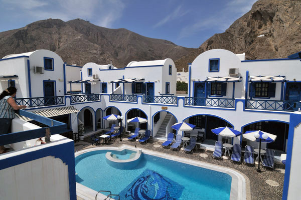 Located in a very beautiful part of Perissa, just 100 meters from the famous black sandy beach and only 50 meters from the main square of Perissa and the bus stop, you can get all the nicest spots of the island at hand.
