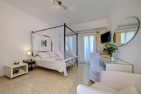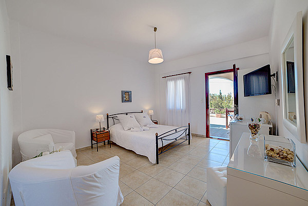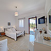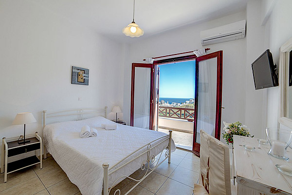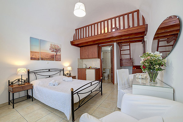 The double apartment has a fully equipped kitchen, a double bedroom with private bathroom and a private balcony with spectacular view to the romantic blue of the Aegean Sea!