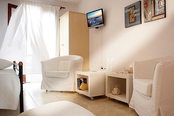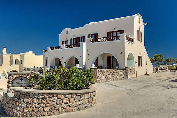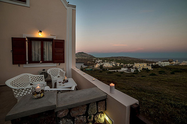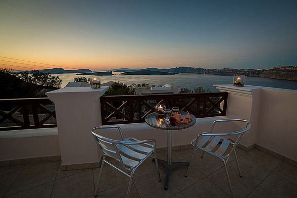 Each apartment has a private veranda with view to the largest "balcony of the Mediterranean Sea": the Caldera of Santorini Island.